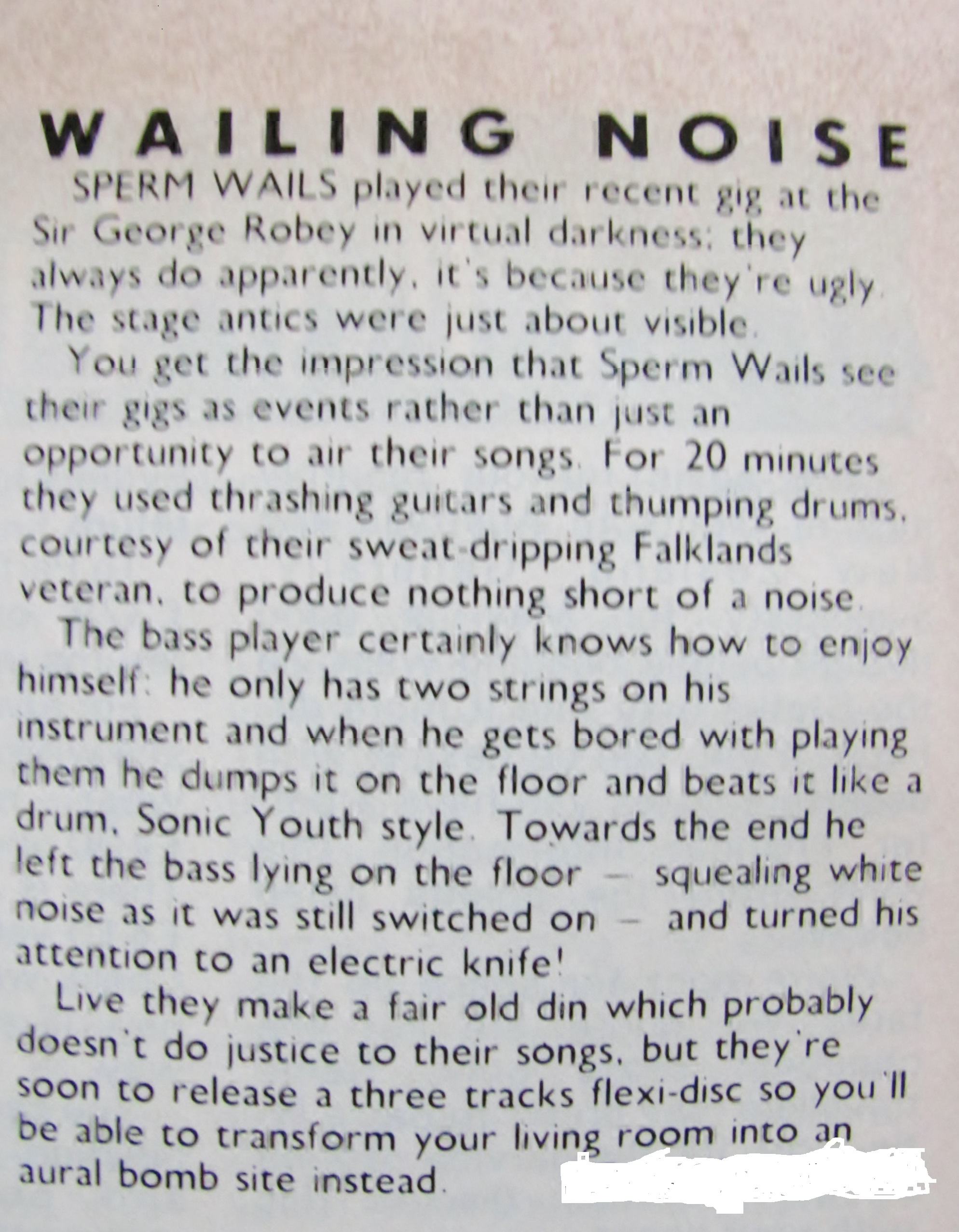far as I remember Sonic Youth were in town doing an album signing and Sperm Wails bass player, Steve, went along and gave Thurston Moore